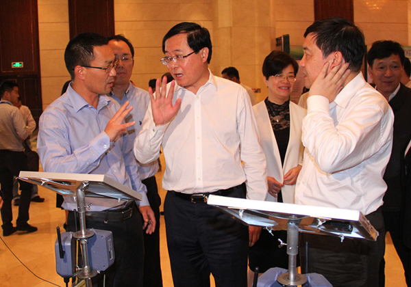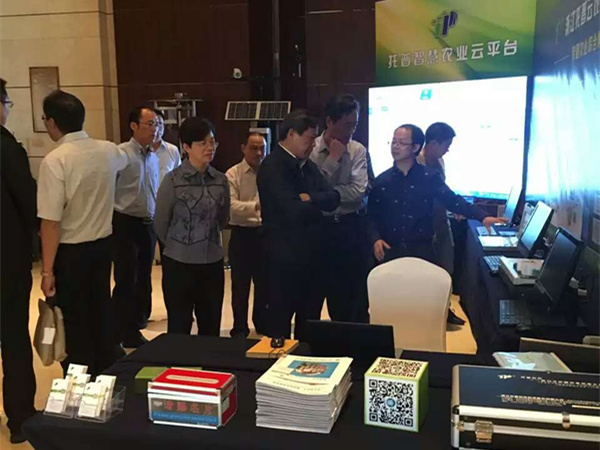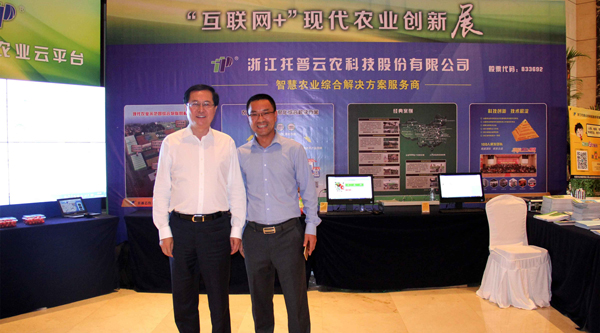 浙江省委副書記、代省長車俊一行也蒞臨托普云農展區,公司董事長陳渝陽、常務副總朱旭華向車省長介紹講解了公司物聯網項目的實施應用情況以及現階段在現代農業領域取得的成績,得到了車省長的肯定與贊許。