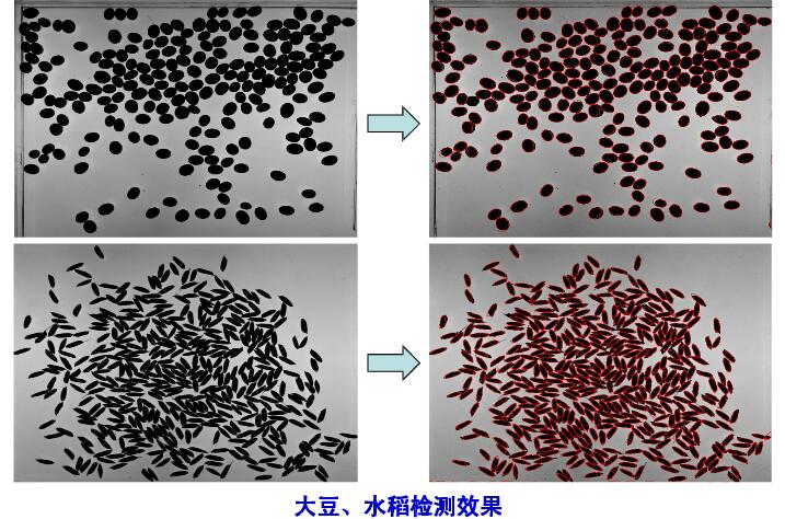 玉米自動考種系統的組成總的來說是由軟件和硬件兩部分組成的,但是細分的話,可以認為玉米自動考種系統是由高精度稱重傳感器、高分辨率攝像頭、高亮度背板光源組成的,玉米自動考種系統非常適用于測量種子的數量、重量、千粒重等參數,被廣泛應用于水稻、種子、小麥、玉米、大豆和油菜等種子的考種作業當中,而從實際的應用效果中,也可以看出,玉米自動考種系統能夠清晰的拍攝種子圖像,并進行自動化的智能識別,測定效率和準確率都,以下是玉米自動考種系統分別用于大豆、水稻和小麥的檢測效果。