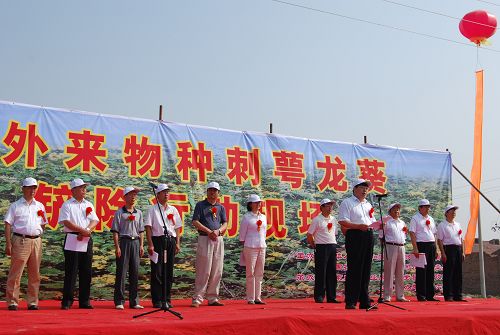 2009年7月6日,農(nóng)業(yè)部科技教育司、河北省農(nóng)業(yè)廳和中國農(nóng)學(xué)會聯(lián)合在河北省召開外來入侵生物刺萼龍葵集中滅除行動現(xiàn)場會,動員社會各界力量,開展外來入侵生物集中滅除行動,提高廣大干部群眾的知毒、識毒、防毒和滅毒能力。農(nóng)業(yè)部科教司王衍亮巡視員出席鏟除現(xiàn)場會,河北省當?shù)馗刹咳罕?00多人參加了現(xiàn)場鏟除,中央電視臺、中央人民廣播電臺等新聞媒體也參加了鏟除現(xiàn)場會。