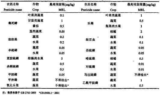 表 蔬菜、水果中有機(jī)磷農(nóng)藥最大殘留限量
