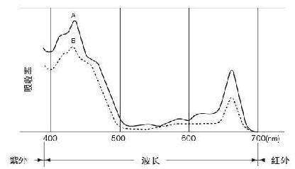 從圖中可以看出,葉綠素在藍(lán)色區(qū)域(400—500nm)和紅色區(qū)域(600—700nm)范圍內(nèi)吸收達(dá)到了峰值,但在近紅外區(qū)域卻沒(méi)有吸收。也就是說(shuō),不同波長(zhǎng)的光線,葉綠素的吸收量是不同的。這也正好符合了我們的要求,通過(guò)不同的吸收量,來(lái)測(cè)出spad值。