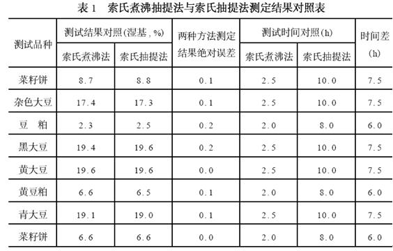 索氏煮沸抽提法快速測定糧食、油料中粗脂肪含量的試驗