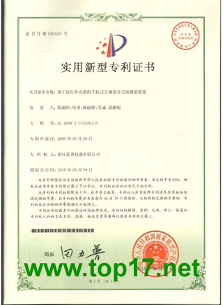 恭喜浙江托普又獲近紅外光譜手持式土壤養(yǎng)分無損測量裝置實用新型專利!