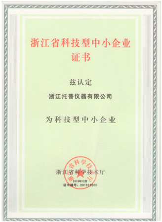 熱烈祝賀浙江托普儀器有限公司被評為浙江省科技型中小企業!