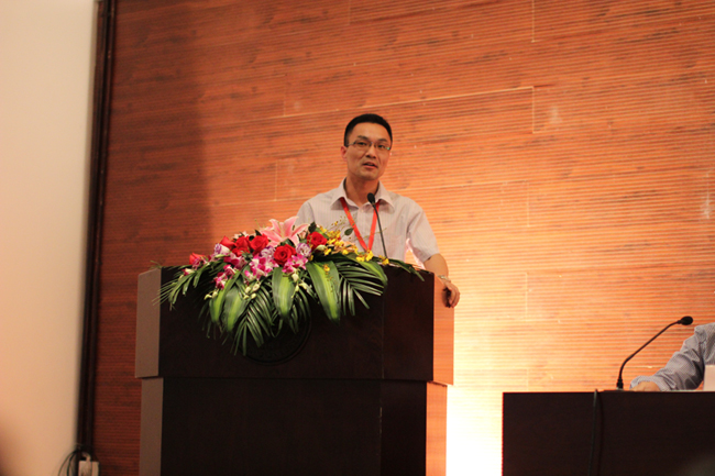 圖為托普儀器陳渝陽總經理作為系友代表上臺講話