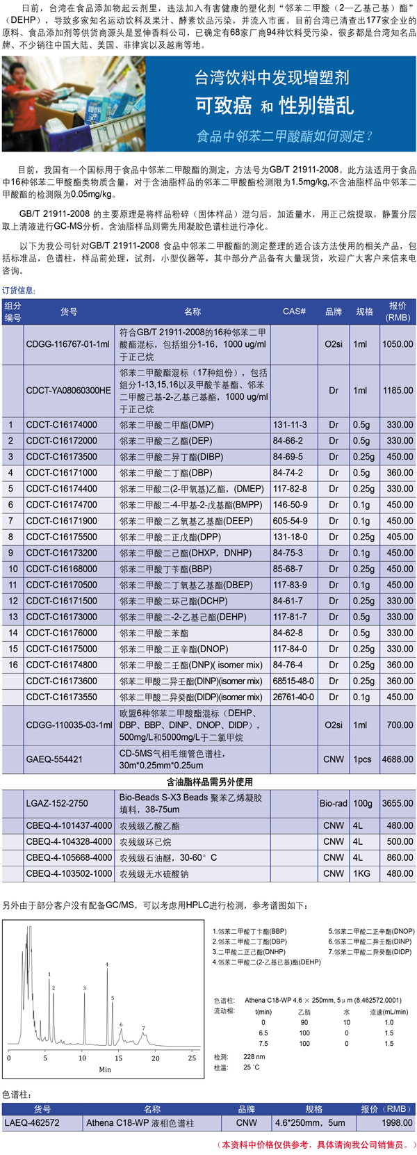 您現(xiàn)在的位置:中國農(nóng)業(yè)儀器網(wǎng) > 行業(yè)動態(tài) >食品飲料中塑化劑的檢測方法及配套耗材