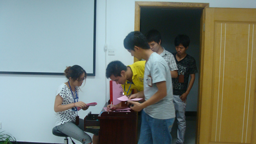 圖為:閱讀選舉細則現場