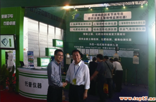 今年8月初,在蘭州召開的2011年全國旱作節(jié)水農(nóng)業(yè)技術(shù)培訓(xùn)班上,崔站長已經(jīng)對托普儀器印象深刻,在榆中縣的甘肅省土壤墑情與旱情監(jiān)測示范區(qū)進(jìn)行實地參觀、考察時,更是現(xiàn)場對托普儀器的無線多點土壤墑情監(jiān)測系統(tǒng)進(jìn)行的了操作,并對此儀器的性能予以充分的肯定。此次土肥雙交會上,也專程到托普展區(qū)參觀、指導(dǎo)。托普儀器總經(jīng)理陳渝陽先生陪同參觀,并介紹了托普儀器的發(fā)展概況及其他土肥類檢測儀器。