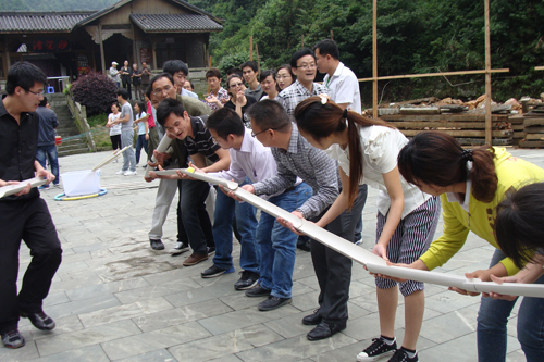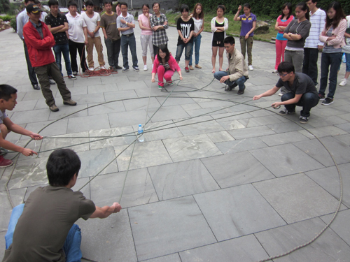 活動(dòng)項(xiàng)目一:雷區(qū)取水,各團(tuán)隊(duì)必須在規(guī)定時(shí)間內(nèi),依靠團(tuán)隊(duì)的協(xié)作和智慧將在雷區(qū)內(nèi)的液態(tài)炸彈(裝滿水的桶)排除,并安全放在雷區(qū)外的彈藥庫(kù);項(xiàng)目二:極速60秒,教練在一個(gè)限制區(qū)內(nèi)放置了30張未知的數(shù)字信息,各隊(duì)成員需派出一名隊(duì)員,要在兩次進(jìn)入限制區(qū)的機(jī)會(huì)內(nèi)將這些數(shù)字信息有小到大的撿出并且排列好;項(xiàng)目三、挑戰(zhàn)五分鐘,隊(duì)員需在五分鐘內(nèi)挑戰(zhàn)完成各個(gè)項(xiàng)目;項(xiàng)目四:畢業(yè)墻,全體隊(duì)員要在不借助任何的物品與工具下,在規(guī)定時(shí)間內(nèi)翻越一堵高四米的墻。這些項(xiàng)目看似簡(jiǎn)單,卻處處需要智慧。各個(gè)隊(duì)員親身體驗(yàn),參與各個(gè)項(xiàng)目之中,并在這種特定環(huán)境中去思考、去發(fā)現(xiàn)、去領(lǐng)悟,進(jìn)而對(duì)自己、對(duì)同事、對(duì)整個(gè)托普大家庭重新認(rèn)識(shí)、重新定位。