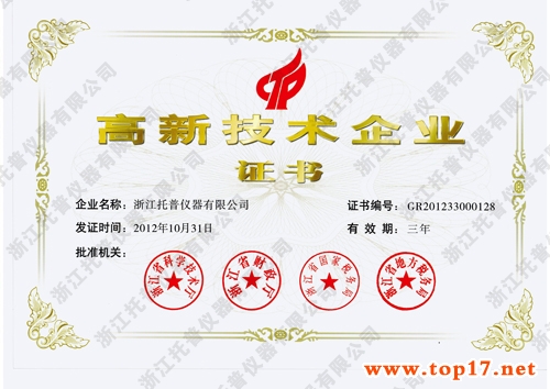 祝賀浙江托普儀器有限公司被認定為“國家高新技術企業”