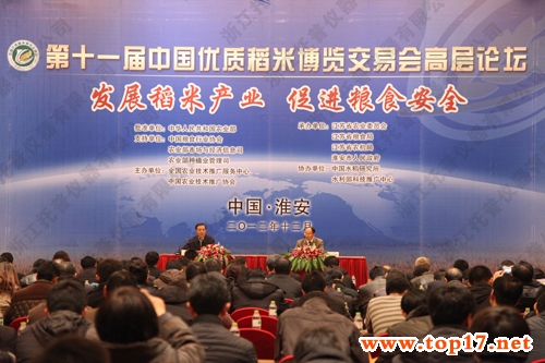 2012年12月10日,第十一屆中國優質稻米博覽交易會高層論壇在淮安舉行,全國人大農業與農村委員會副主任委員、中國農業技術推廣協會尹成杰會長;中國工程院院士、中國農科院副院長劉旭;中國水稻研究所稻作中心朱德峰主任;國際水稻研究所Grant Robert Singleton博士;沈陽農業大學農業部重點實驗室副主任、副教授馬殿榮;黑龍江省農科院食品加工研究所盧淑雯所長等六位專家來賓做了精彩的報告;窗彩形睍浘氃虑;淮安市人大常委會李冰副主任出席論壇。