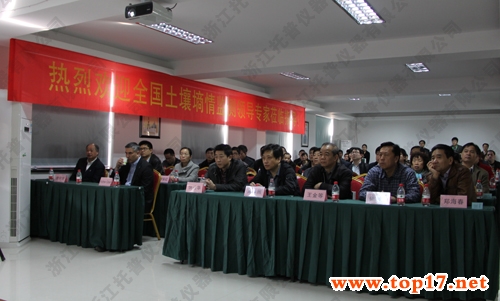 2013年3月5日,全國土壤墑情監測技術培訓班在杭州舉辦。次日上午,在全國農技推廣中心節水處高祥照處長帶領下,來自全國各省市土肥站領導和加拿大泰克資源安德魯·格林教授、國際鋅協會樊明憲教授等90人來到托普儀器參觀指導。浙江托普儀器有限公司陳渝陽總經理、朱旭華副總經理對各位領導專家的到來表示熱烈的歡迎,并全程陪同參觀。