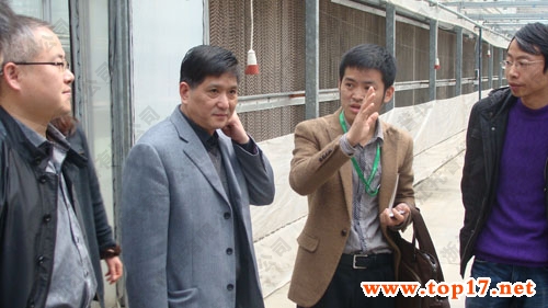 圖為:托普工作人員在介紹通過網絡來控制種植大棚里的各項指標,右二:戴守勤副處長