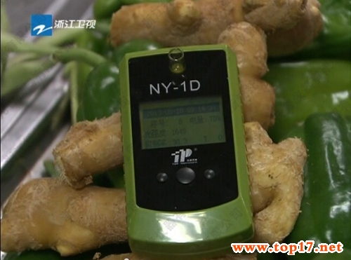 圖為:浙江新聞聯(lián)播報道正在檢測蔬菜農(nóng)殘的攤主