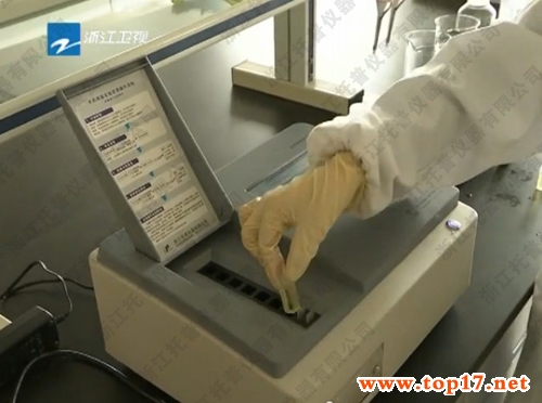 托普儀器朱旭華副總經(jīng)理介紹,農(nóng)藥殘留速測儀是利用目前市場上常用的兩類農(nóng)藥對特殊試劑的強烈抑制作用來檢測蔬果上殘留的農(nóng)藥含量。在托普儀器的實驗里,工作人員用小番茄和枇杷對NY-8D的操作過程進行演示。20分鐘左右的樣品處理,3分鐘的檢測等待,農(nóng)殘儀就打印出了檢測的結(jié)果。結(jié)果顯示這兩種水果都有少量的農(nóng)藥殘留,但在安全范圍之內(nèi)。朱旭華副總經(jīng)理也建議大家,平時在洗滌蔬果的時候,可用淡鹽水浸泡一下,以減少蔬果上的農(nóng)藥殘留。