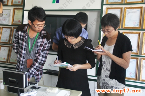 培訓開始時,所有培訓參與者分成兩組,一組在三樓樣品室,一組在四樓實驗室,兩組培訓課程同時進行,浙江托普儀器有限公司四名技術人員全程講解,以化繁為簡的方式展開了此次儀器培訓。