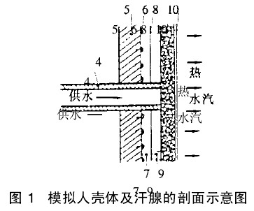 以芬蘭技術(shù)研究中心(VTT)研制的出汗暖體模擬人為例簡介如下,模擬人殼體及汗腺的剖面結(jié)構(gòu)示意如圖1所示。