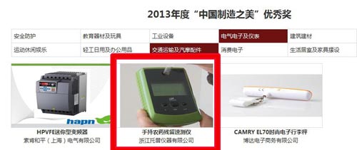 托普儀器手持農藥殘留速測儀成功斬獲2013年度“中國制造之美”優秀獎