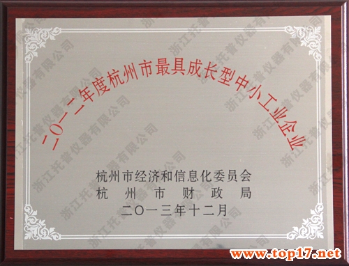 托普儀器榮獲2012年度杭州市最具成長型中小工業(yè)企業(yè)獎勵