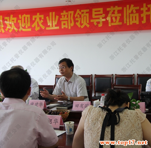 7月5日,農業部原部長、中國農技推廣協會名譽會長陳耀邦、全國農技推廣中心副主任、中國農技推廣協會秘書長謝建華一行,蒞臨浙江托普儀器有限公司進行調研。