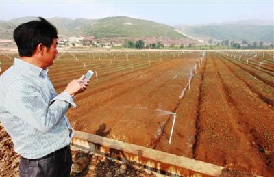 “我現(xiàn)在即使是在北京、上海等大城市,用手機也可以遙控自家的田地,還可以看見田里的實時畫面,這個功能很強大!”開遠市壹佳益種植有限公司總經(jīng)理、開遠市的“鄉(xiāng)土能人”王中壹在田邊拿著手機邊演示給記者看邊介紹,水噴濕了褲子也全然不顧。
