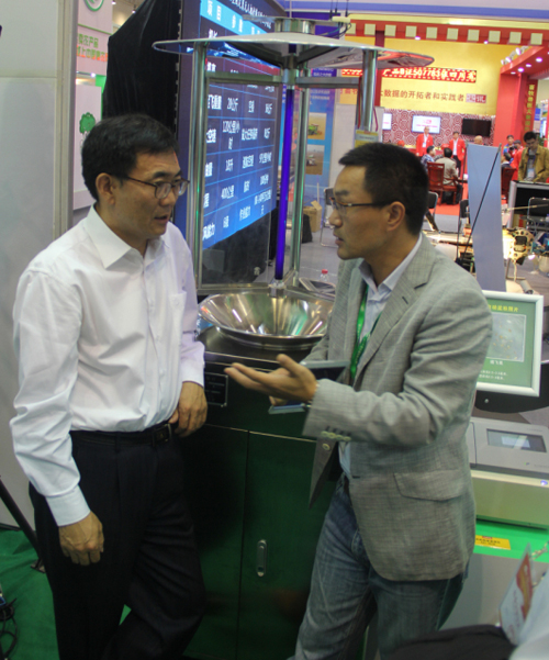 農(nóng)交會(huì)期間,張合成司長一行親臨托普儀器展臺(tái)考察指導(dǎo)工作,托普儀器陳渝陽總經(jīng)理詳細(xì)介紹了此次展出的農(nóng)業(yè)物聯(lián)網(wǎng)“四大系統(tǒng)”平臺(tái):設(shè)施農(nóng)業(yè)自動(dòng)監(jiān)測與控制平臺(tái)、農(nóng)作物病蟲害監(jiān)測預(yù)警信息平臺(tái)、土壤墑情監(jiān)測與預(yù)警信息平臺(tái)、食品安全監(jiān)控與追溯信息系統(tǒng)。張合成司長表示,信息化技術(shù)是現(xiàn)代農(nóng)業(yè)的重要發(fā)展方向,應(yīng)加強(qiáng)研究力度,提高整體應(yīng)用水平。