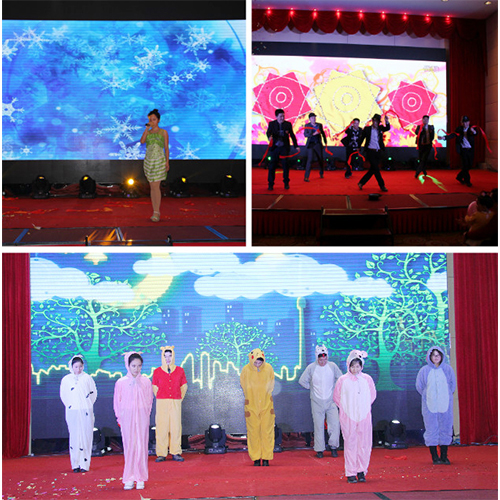 精彩紛呈的“新故事,新起點”2016新春年度盛典在四位支持人的深情開場中拉開序幕。熱情歡樂《金獅送福》領先開演,為大家送來了新年的祝福;勁舞《說愛就愛》,激情火爆,樂觀向上的精神風貌展現得淋漓盡致;研發團隊的舞臺劇《電影院那些事》演繹了公司研發人員豐富飽滿的內心世界。一首《飄雪》,瞬間將我們就帶入了純情浪漫模式。古箏演奏,優雅悠揚;激情昂揚的《保衛黃河》將整個晚宴推向高潮;銷售部老男人們的《群魔亂舞》讓大家更是樂的開懷暢飲!期間的互動環節及歡樂大抽獎讓全場氛圍熱烈而又充滿期待,高潮迭起!