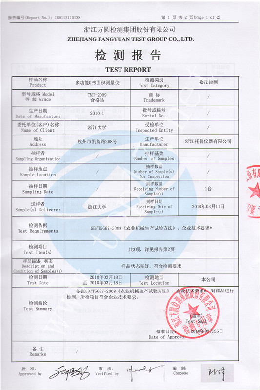 面積測量精度:1-10畝 ±2.5%;10畝以上 ±1%