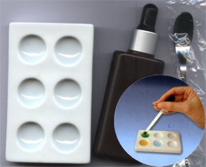 - 滴下指示藥(碟子凹中8分滿程度)。